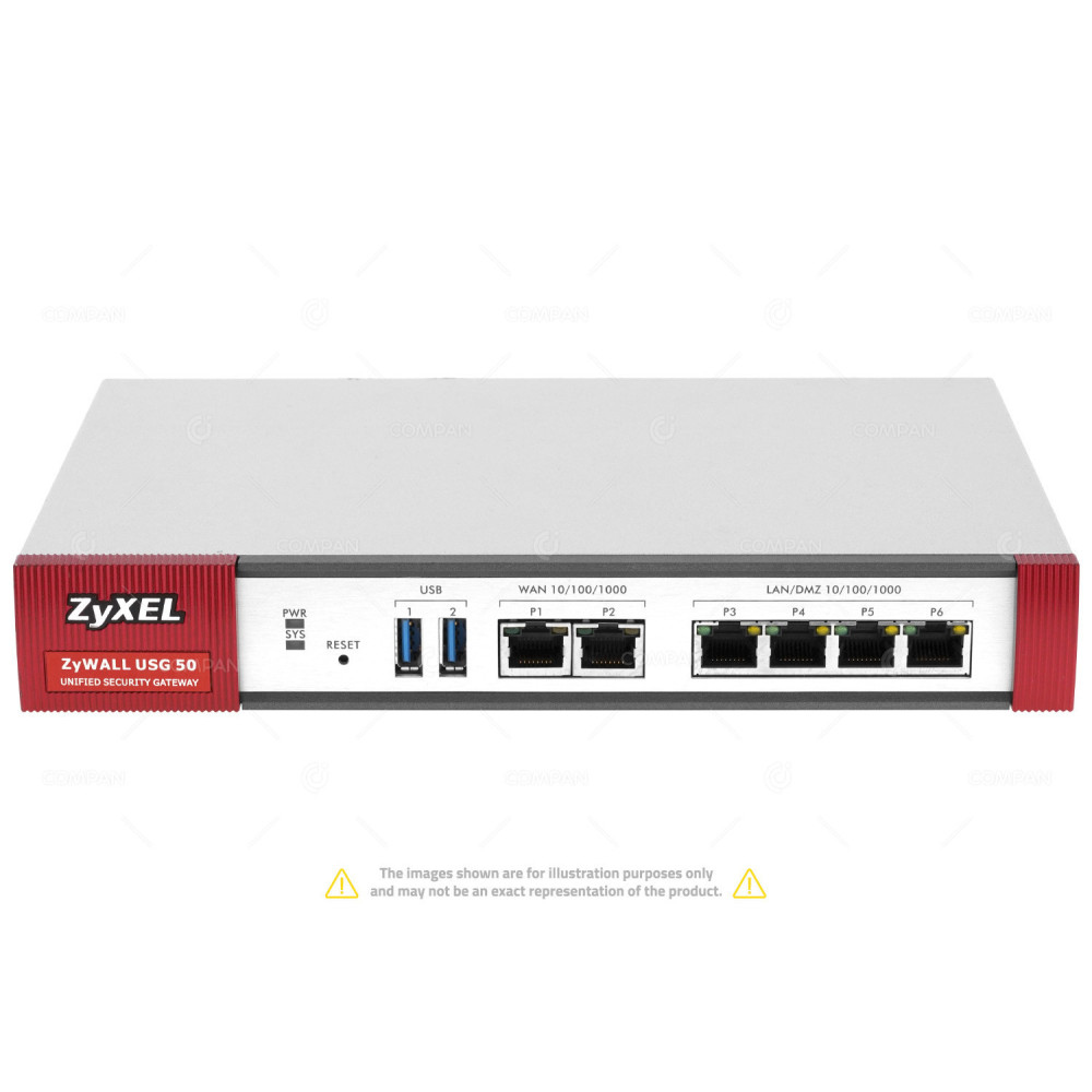 USG50 ZYXEL ZYWALL USG 50 6 PORT 1GB BASE-T UNIFIED SECURITY GATEWAY WITHOUT AC ADAPTER NO OS -