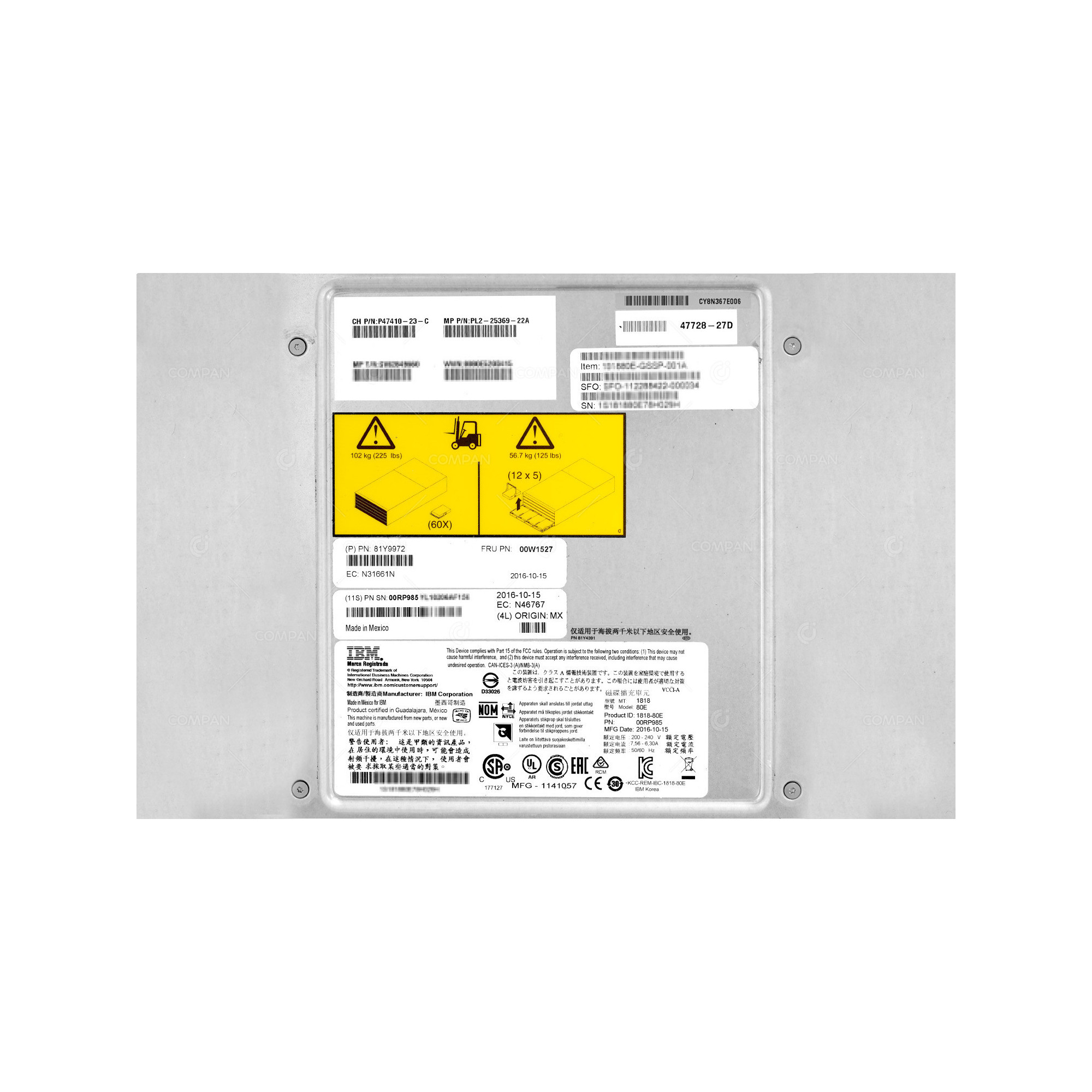 1818-80E IBM SYSTEM STORAGE DCS3700 EXPANSION UNIT 60 BAY 3.5 LFF WITHOUT CADDY P47410-23-C, PL2-25369-22A, 81Y9972, 00RP985