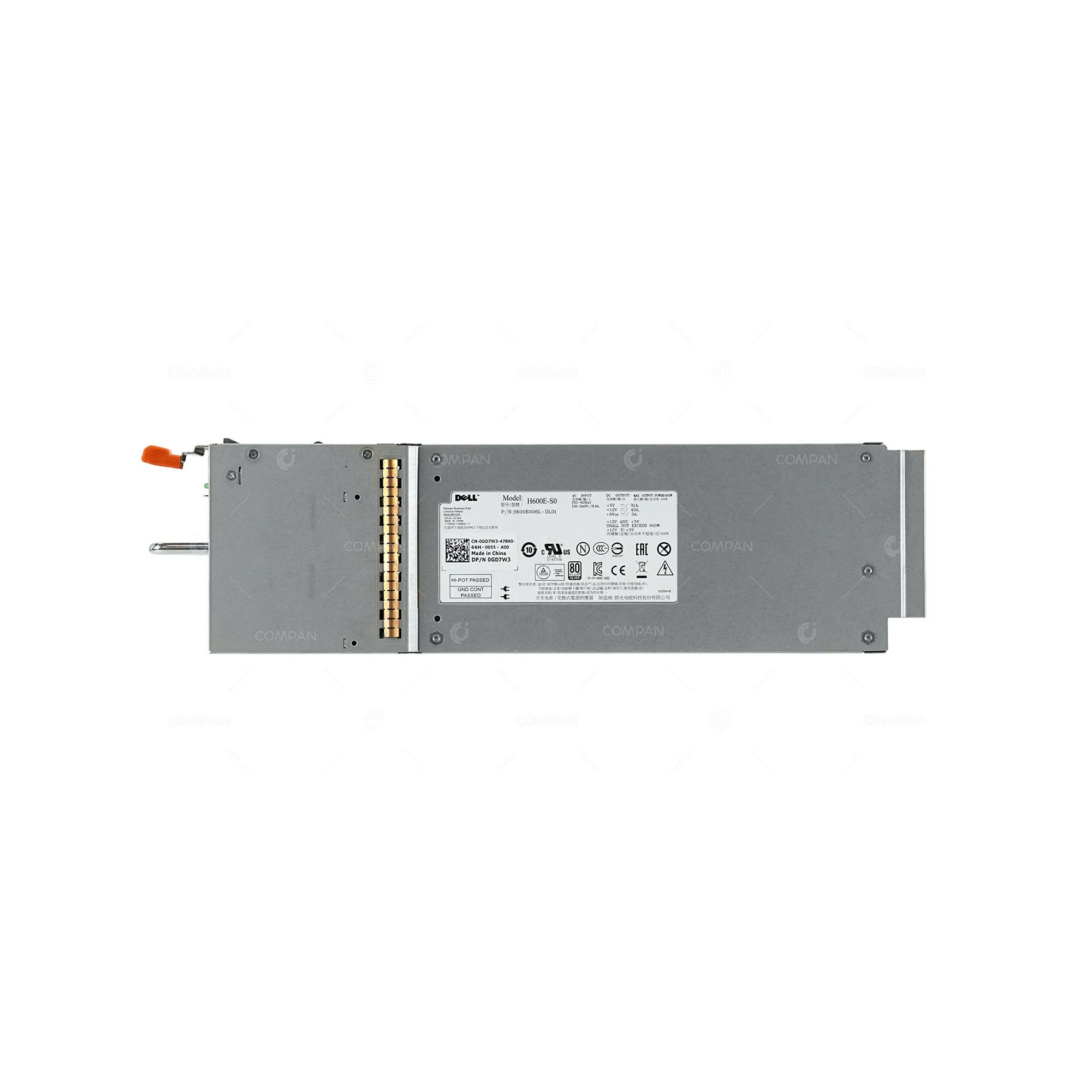 GD7W3 DELL 600W POWER SUPPLY 80 PLUS SILVER FOR SC400 SC420, POWERVAULT MD12XX MD32XX MD34XX 36XX 38XX 06D7W3, H600E-S0, S600E006L-DL01