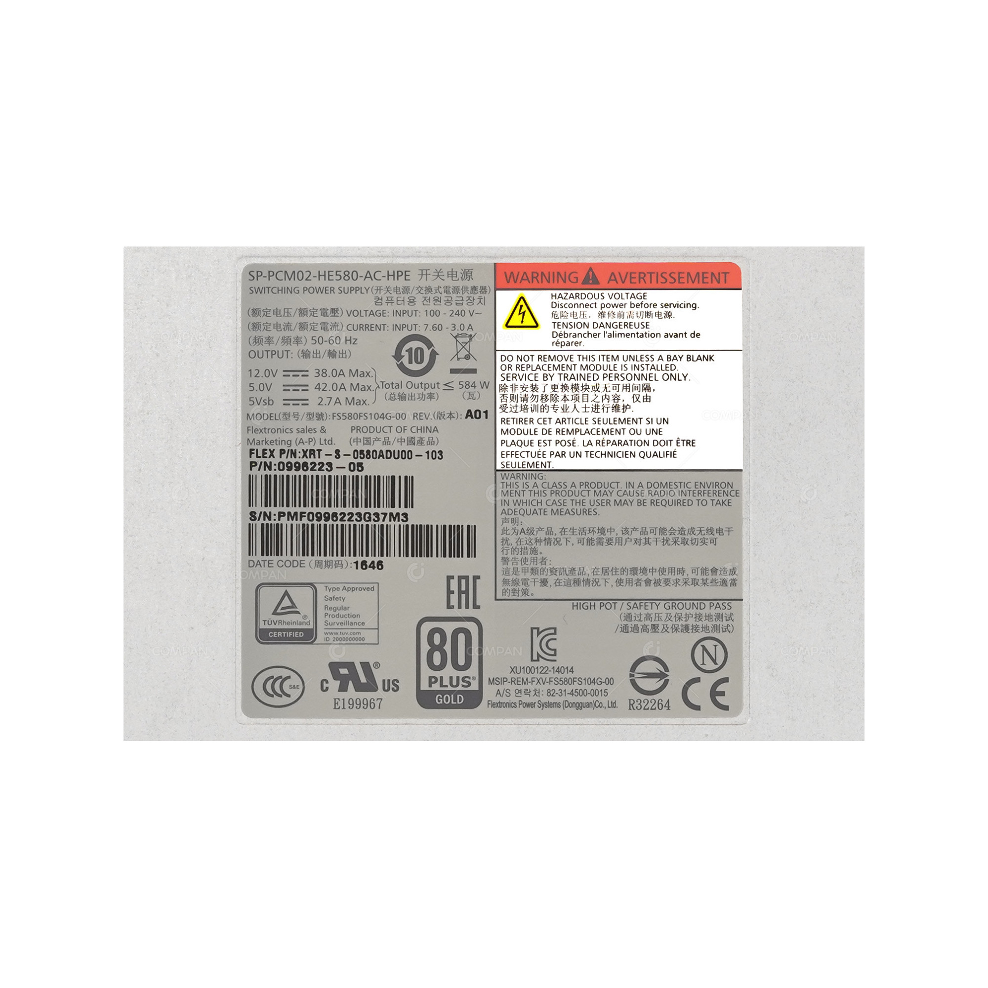 756486-001 HPE 580W POWER SUPPLY FOR 3PAR STORESERV 8000