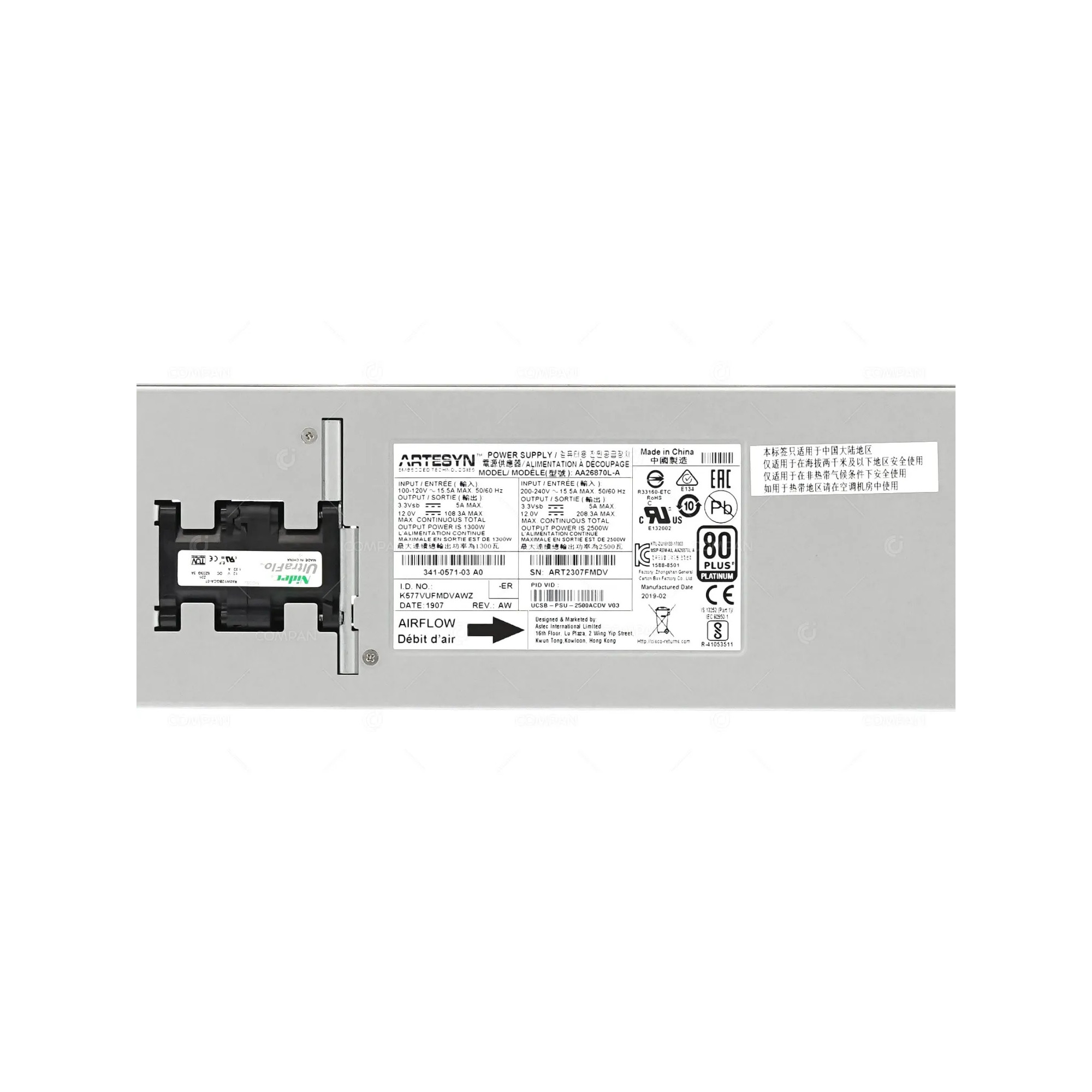 341-0571-03 CISCO POWER SUPPLY 5108 2500W PLATINUM AC FOR UCS UCSB-PSU-2500ACDV
