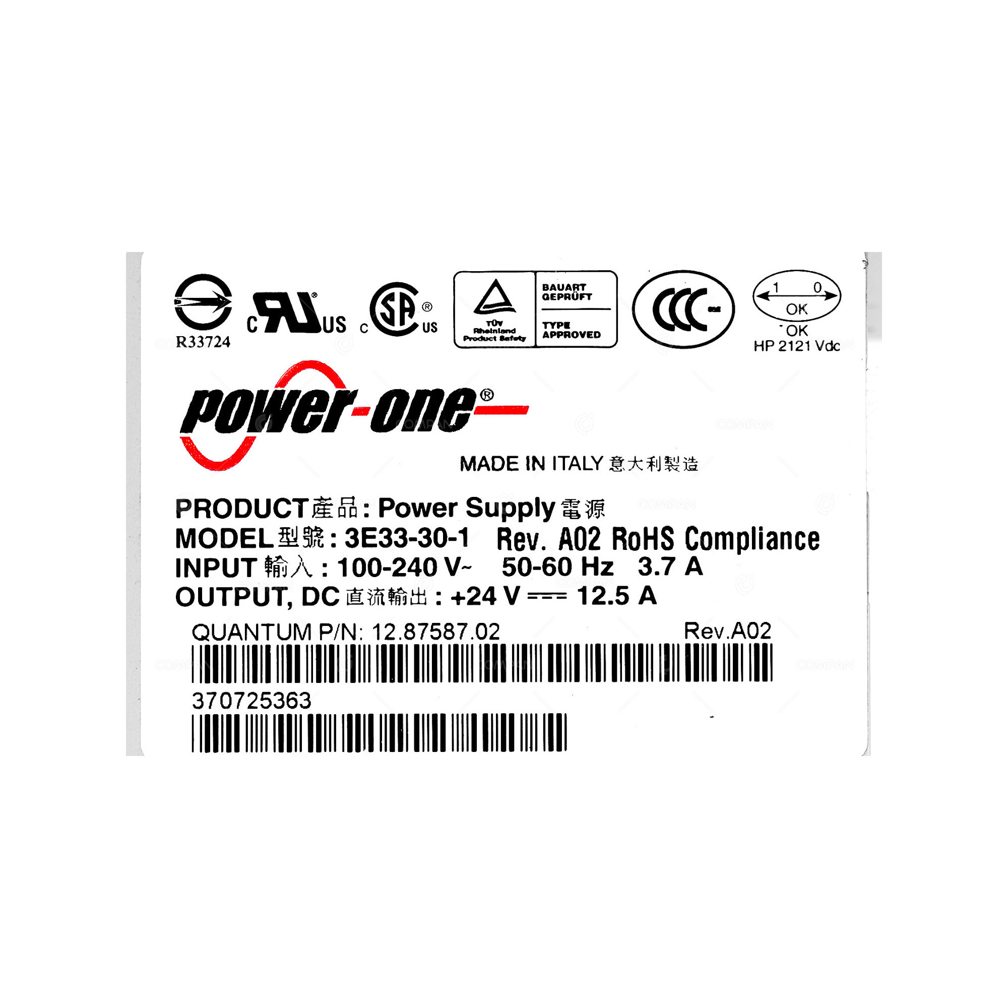3E33-30-1 QUANTUM POWER SUPPLY 250W PX500 502 -