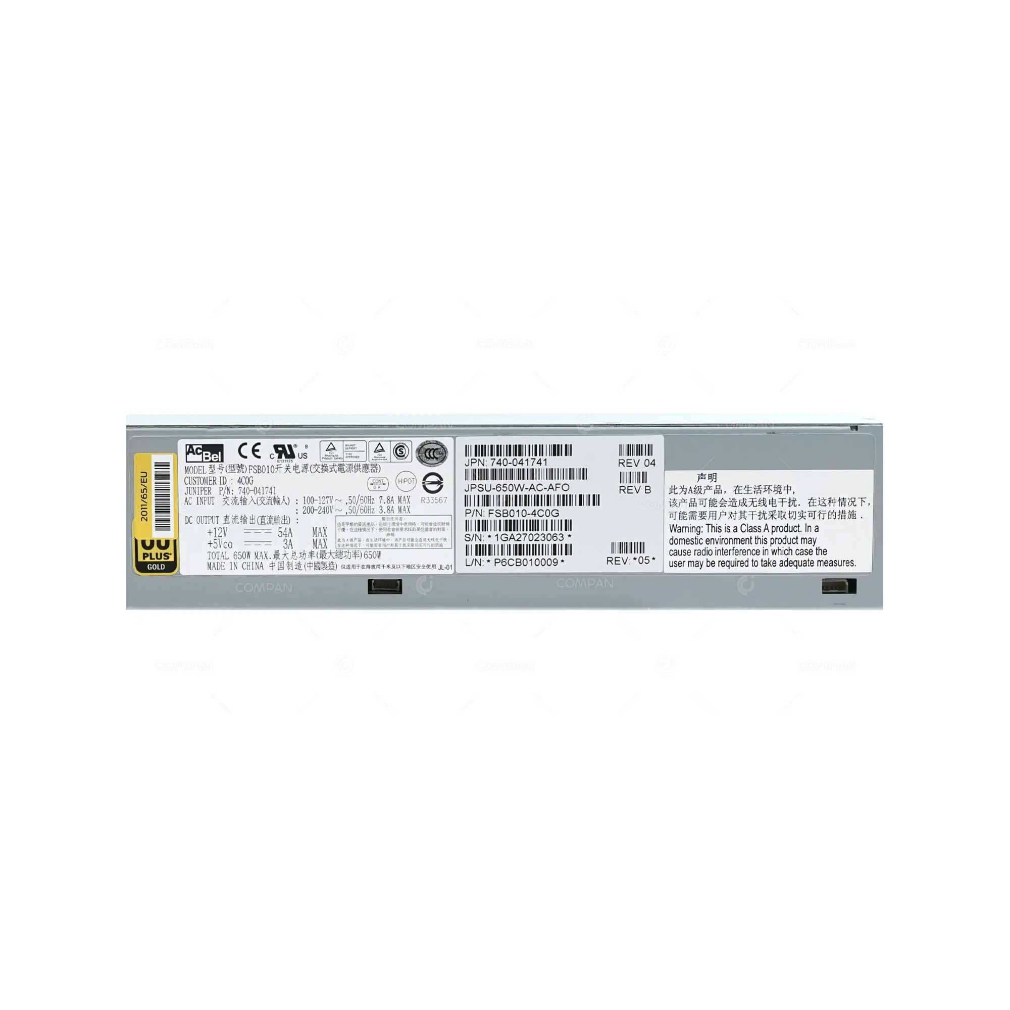 JPSU-650W-AC-AFO JUNIPER 650W POWER SUPPLY 80 PLUS GOLD FOR EX4600 740-041741, FSB010-4C0G, P6CB010009