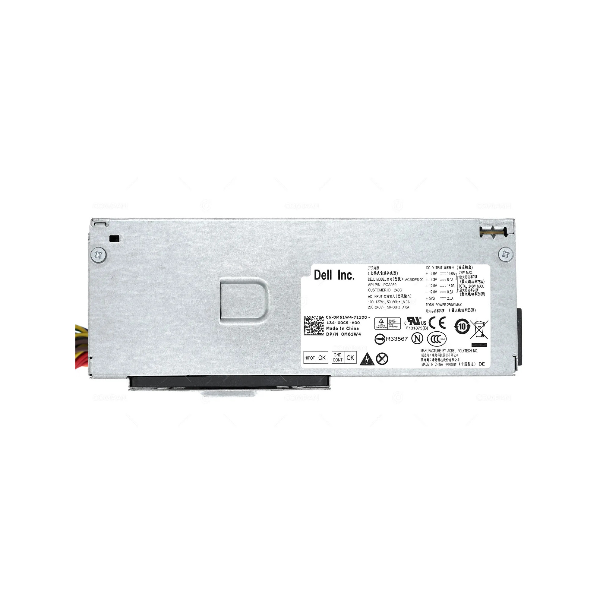 M61W4 DELL 240W POWER SUPPLY FOR OPTIPLEX 390 790 0M61W4, AC250PS-00, PCA039