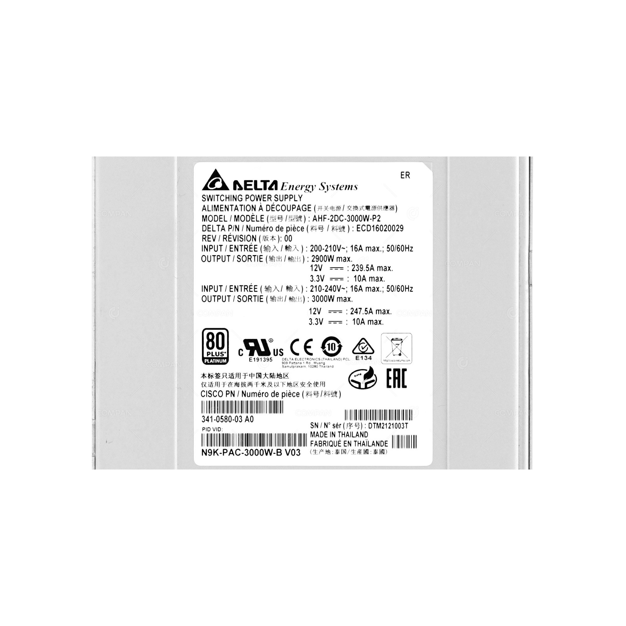 N9K-PAC-3000W-B CISCO 3000W POWER SUPPLY FOR N9K-C9508 341-0580-03, AHF-2DC-3000W-P2 N9K-PAC-3000W-B CISCO 3000W POWER SUPPLY FOR N9K-C9508 341-0580-03, AHF-2DC-3000W-P2 N9K-PAC-3000W-B CISCO 3000W POWER SUPPLY FOR N9K-C9508 341-0580-03, AHF-2DC-3000W-P2 N9K-PAC-3000W-B CISCO 3000W POWER SUPPLY FOR N9K-C9508 341-0580-03, AHF-2DC-3000W-P2