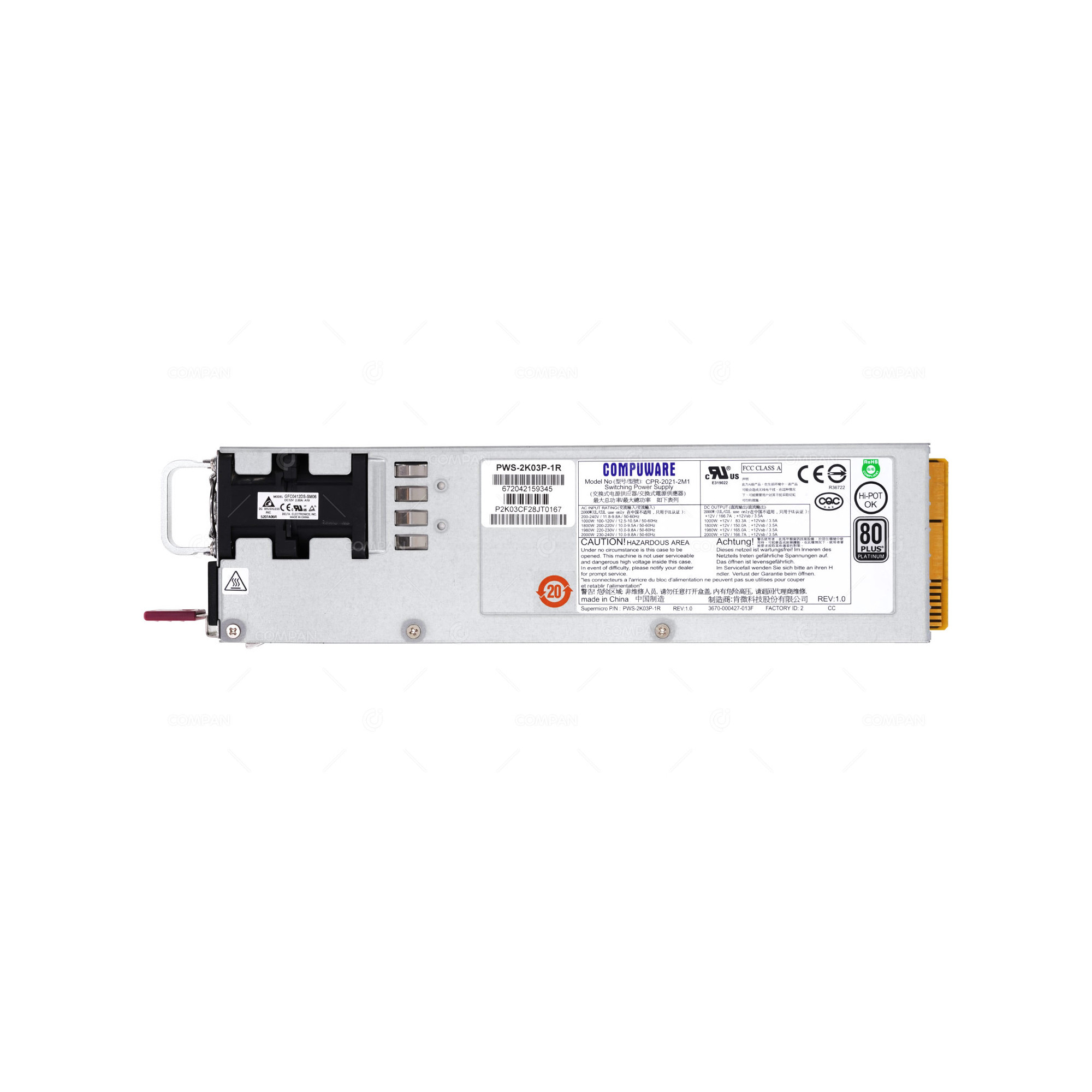 PWS-2K03P-1R COMPUWARE 80 PLUS PLATINUM 2000W POWER SUPPLY FOR BULLSEQUANA S S200 CPR-2021-2M1 PWS-2K03P-1R COMPUWARE 80 PLUS PLATINUM 2000W POWER SUPPLY FOR BULLSEQUANA S S200 CPR-2021-2M1 PWS-2K03P-1R COMPUWARE 80 PLUS PLATINUM 2000W POWER SUPPLY FOR BULLSEQUANA S S200 CPR-2021-2M1